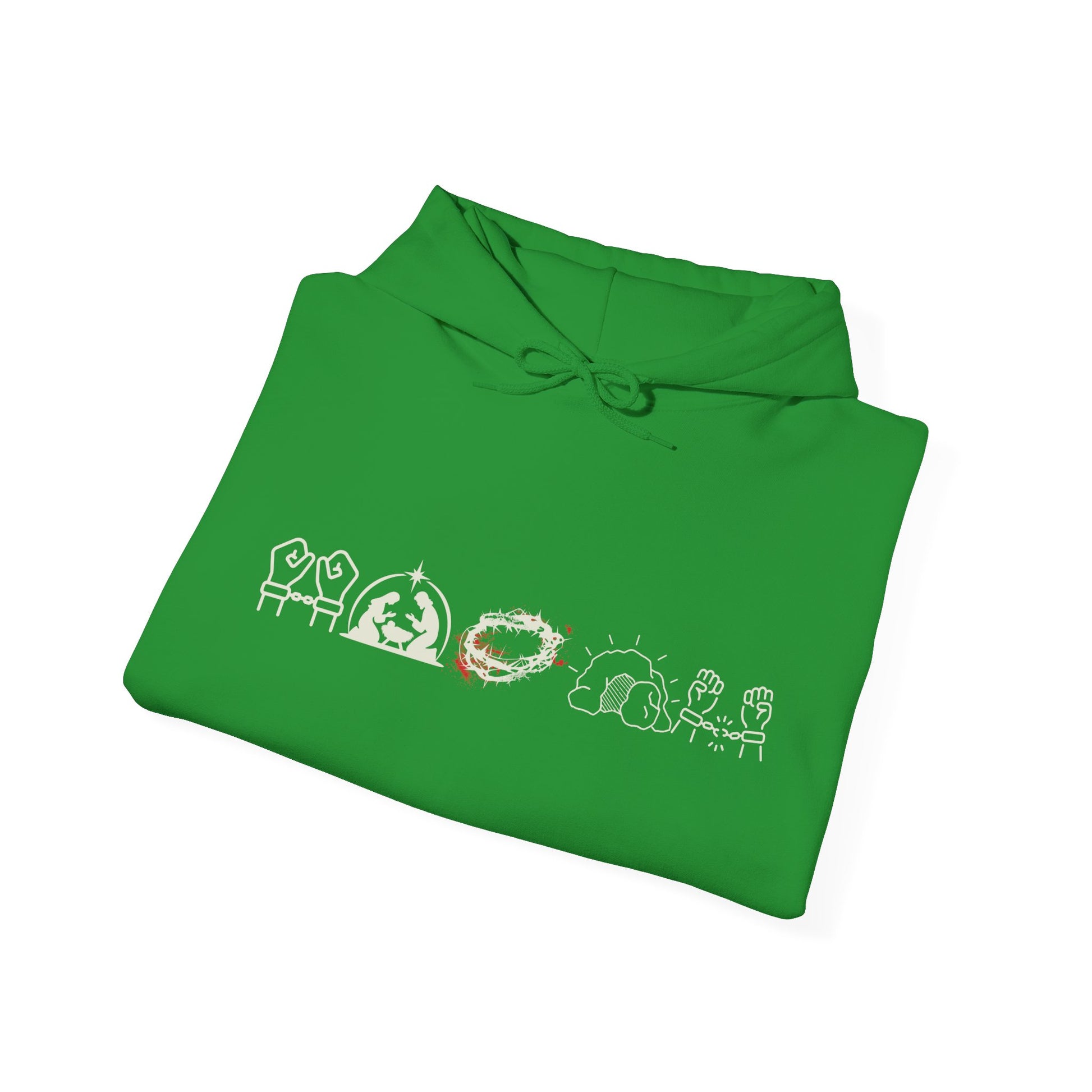 Stay cozy and festive with this 'From Chained to free Christmas' hoodie. Perfect for the Christmas season, this hoodie gives off a cheerful vibe, ideal for those who love celebrating Christmas. The spacious pockets and drawstring hood add functionality and style, making it a great addition to your winter wardrobe.