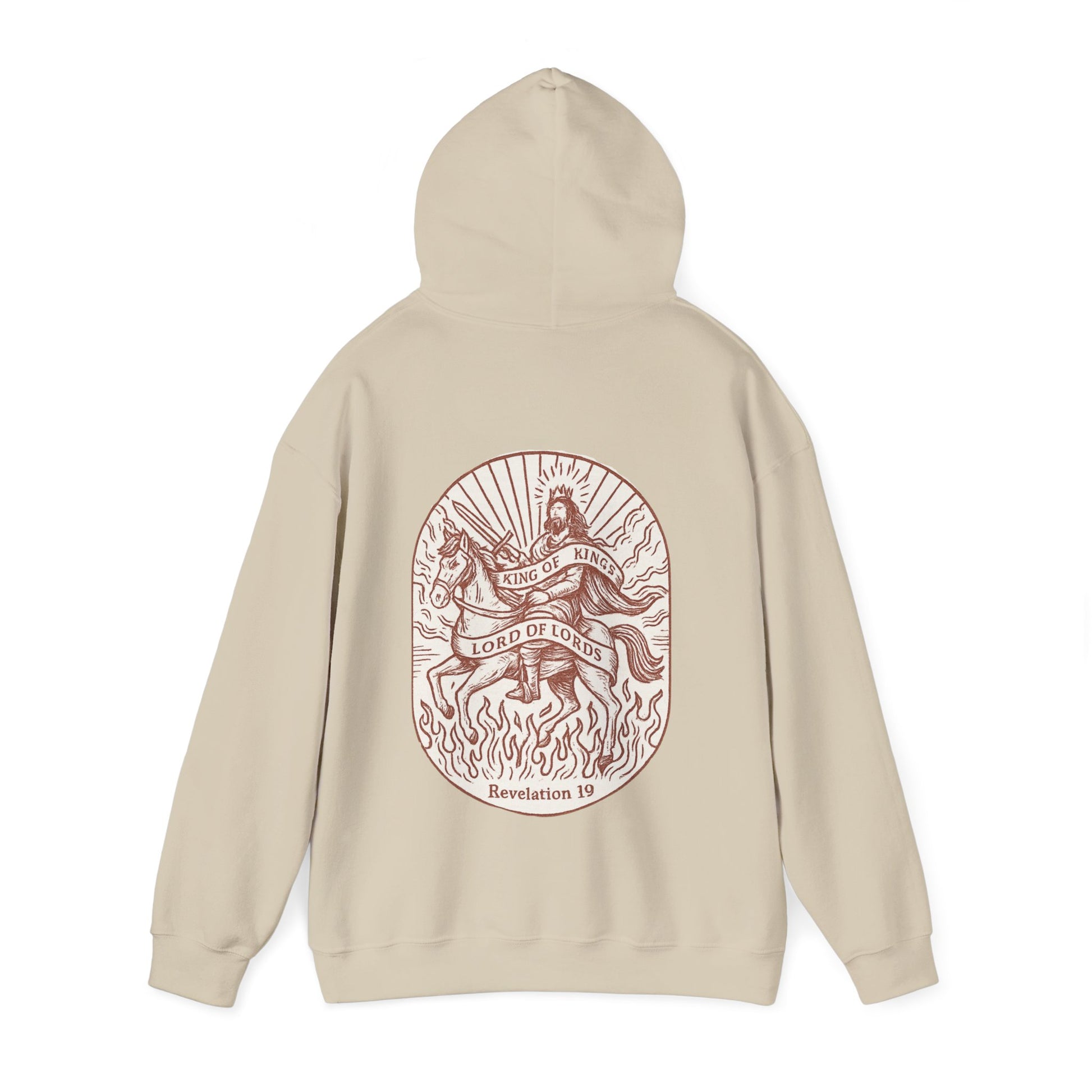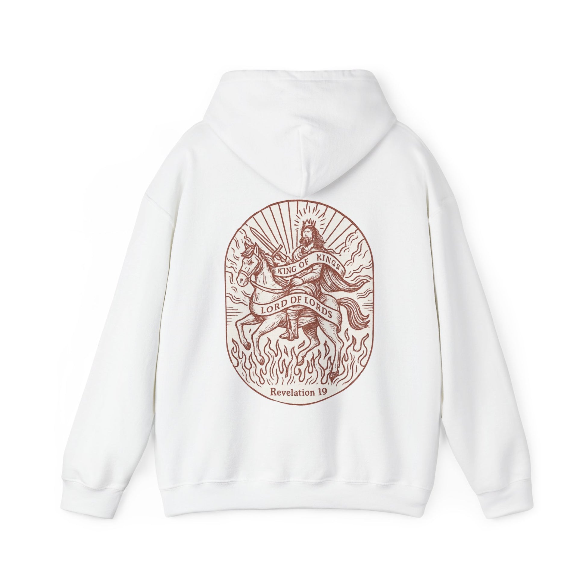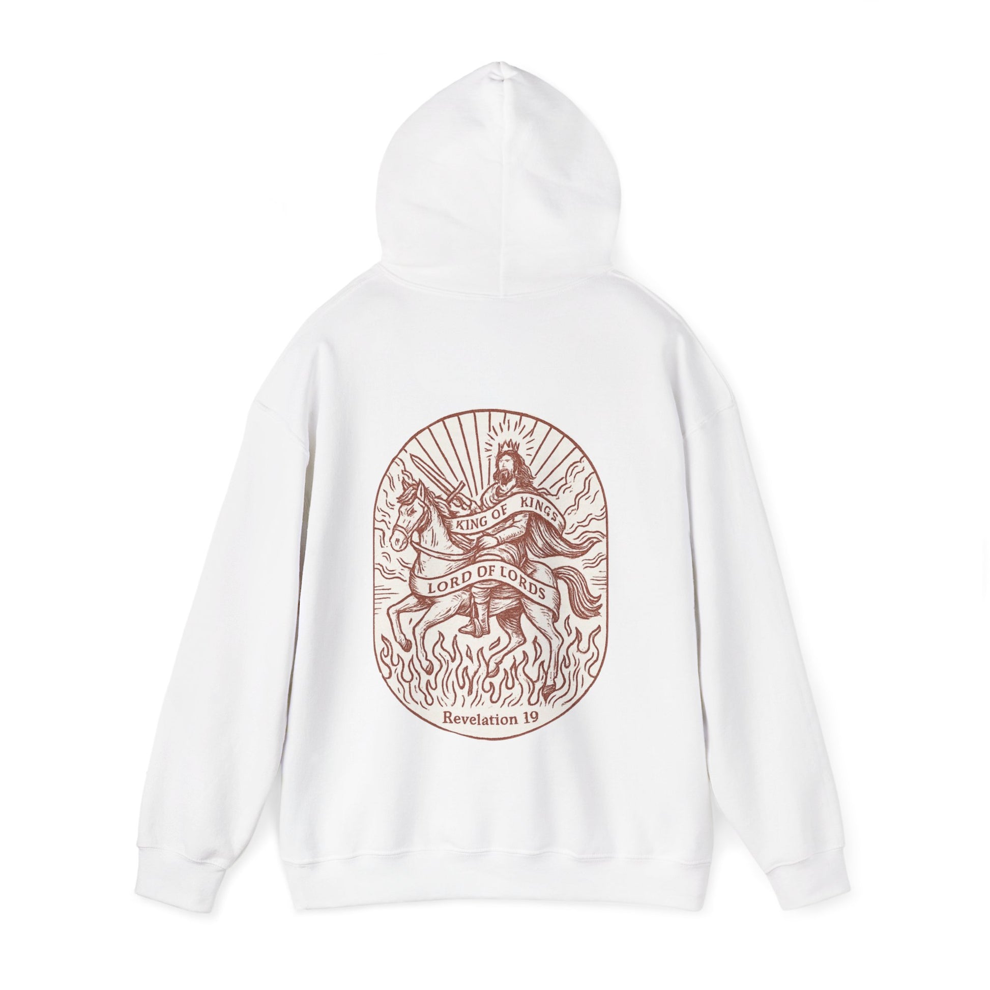 This Hoodie features a revelation 19 scene design. Perfect for those who are interested in prophetic drawing. Bible study sessions, or as a unique conversation starter.